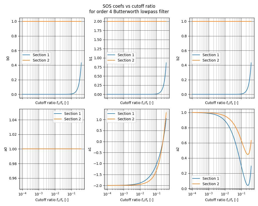 - Functions to generate SOS Butterworth low-pass filters for a given cutoff frequency: